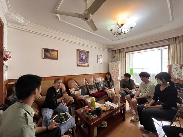 活动中,同学们带着香糯可口的粽子来到社区抗美援朝老兵彭奶奶和退休老干部栾爷爷家中,为“五老”革命前辈带去衷心的敬意和问候。两位老干部已是90多岁高龄,他们讲述着自己在战场前线舍生忘死、保家卫国、浴血奋战的感人故事。“希望同学们珍惜和平,勤奋学习,把握青春,为国家发展做出自己的贡献!”彭奶奶语重心长地叮咛着。我校优秀退役大学生士兵赵虹光向彭奶奶深深鞠躬并讲道:“抗美援朝老兵是青年一代的榜样,英雄老去,光辉永驻。我们要做到退役不退志,退伍不褪色,铭记军人情怀和责任担当,写好属于我们的青春答卷。”