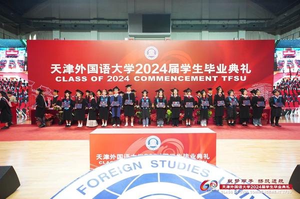 校党委书记周红蕾为毕业生授旗,希望全体毕业生牢记校训精神,在新时代的广阔天地中一展风采;并与校友葛云飞、毕业生代表共同启动天外60周年校庆倒计时100天,全体毕业生高呼“祝母校生日快乐”将毕业典礼推向高潮!主席台领导为2024届校友联络人颁发聘任证书,希望他们传承天外基因,做好校友和母校的联络员,助力构建学校校友发展共同体。