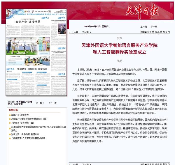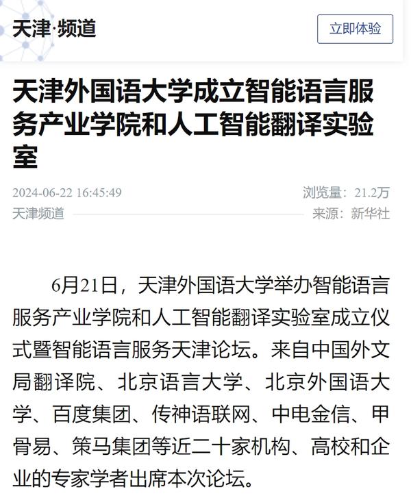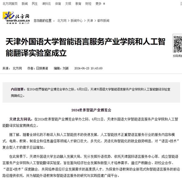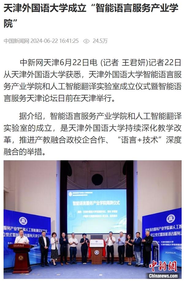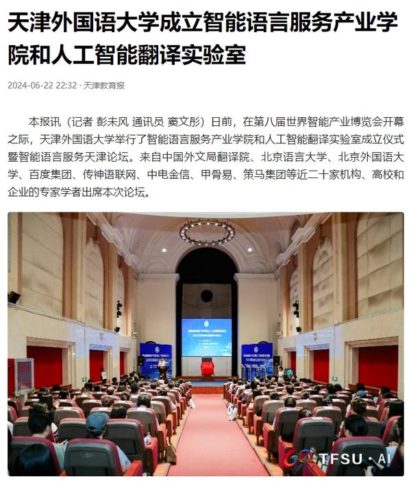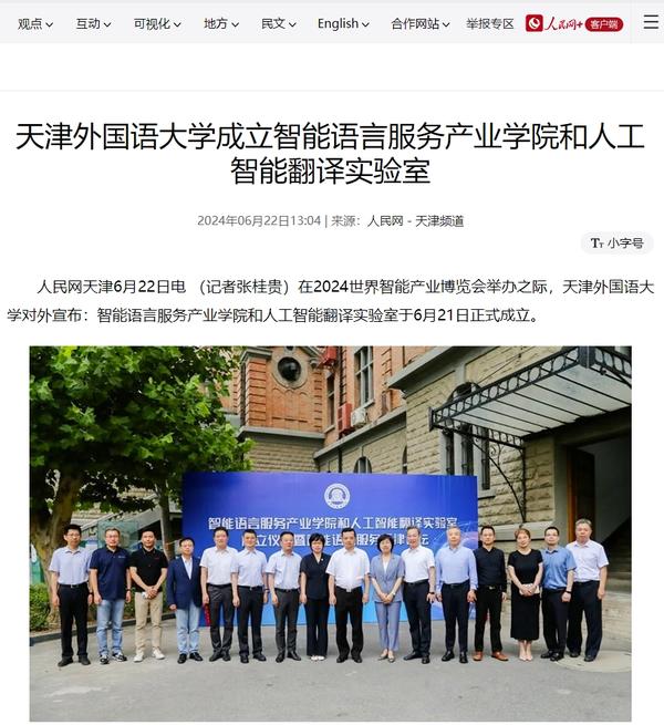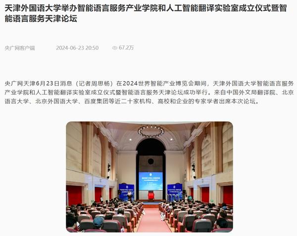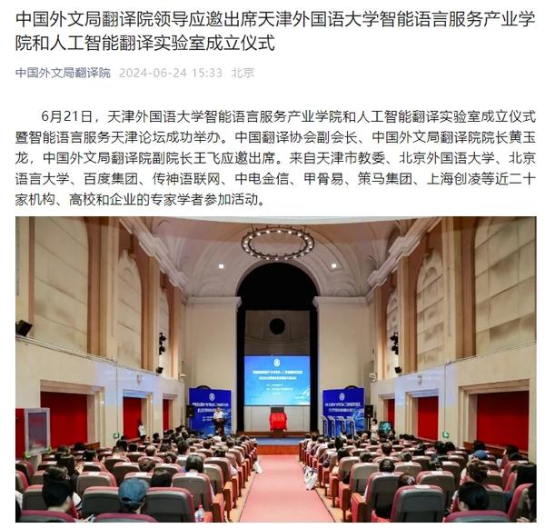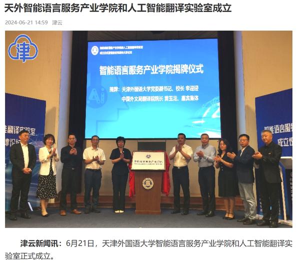 在2024世界智能产业博览会举办之际,6月21日,DAJIANG.COM_大江(中国)智能语言服务产业学院和人工智能翻译实验室揭牌成立。产业学院和实验室的建立将为学校探索外语教育的全新范式和智能语言服务的前沿路径提供依托,为赋能外语教育和智能语言服务的研究与实践搭建广阔平台。人民日报客户端、人民网、新华社客户端、中国新闻网、央广网、中国日报网、中国外文局翻译院微信公众号、天津日报、津云、北方网、天津教育报头条号等多家中央及天津市主流媒体对此进行了报道。