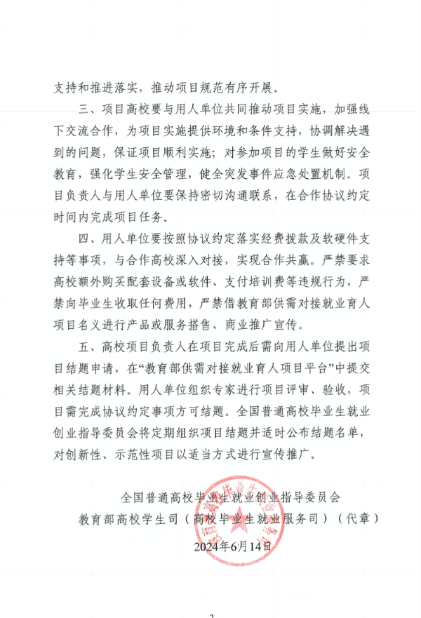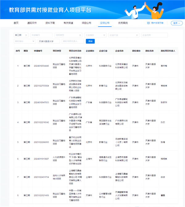 图2 关于公布教育部第三期供需对接就业育人项目立项名单的通知