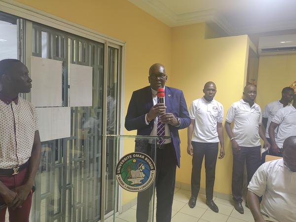 邦戈大学孔子学院中方院长吴宁先生和加方院长奥沃诺先生带领来宾参观孔子学院,分别介绍了孔子学院的办学历史、办学理念和办学使命。