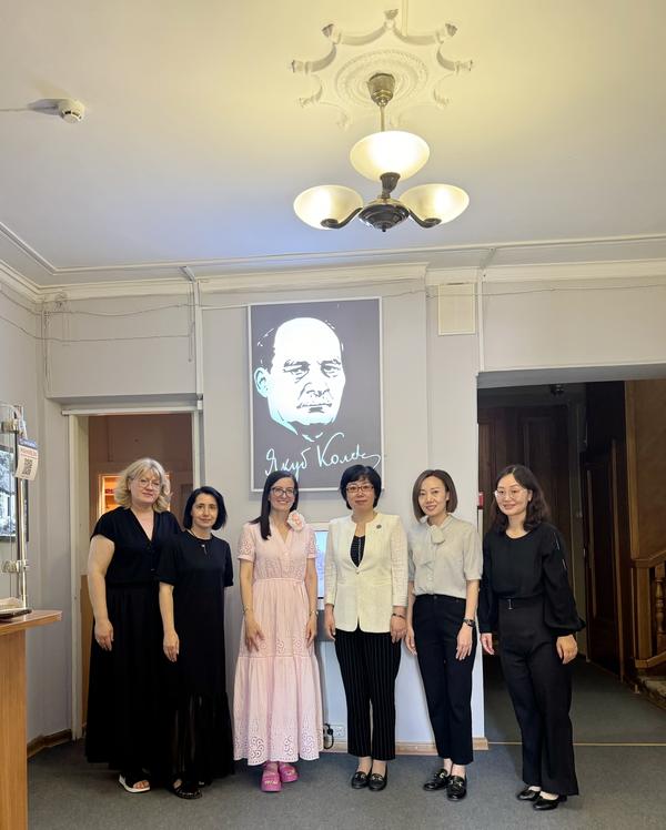 6月27日下午,代表团访问白俄罗斯共和国文化部雅库布·科拉斯文学纪念博物馆,馆长马萨斯·伊琳娜热情接待。双方就为我校在白俄罗斯交流学生提供专业实践机会、依托“雅库布·科拉斯”中心举办白俄语专业竞赛、共同翻译“雅库布·科拉斯”作品等内容进行洽谈并达成一致意见。在白俄罗斯文化部和雅库布?科拉斯文学纪念博物馆的支持和资助下,我校白俄语师生团队翻译的全国首部《雅库布?科拉斯散文选集》将于今年10月初出版,届时将在我校举行新书发布仪式。