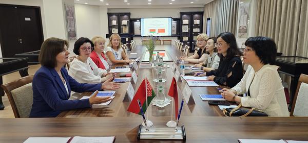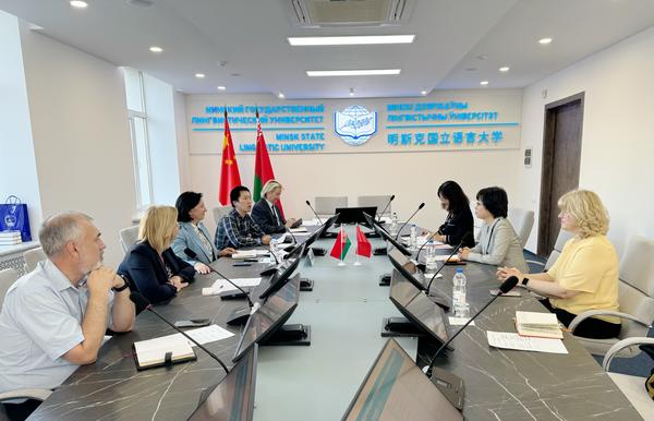 6月27日上午,代表团访问明斯克国立语言大学,与校长拉普杰娃·娜塔莉娅,副校长别婕妮娅·叶莲娜等进行会见并座谈。双方就2+2、4+1联合培养项目进行深入讨论并达成一致意见,双方将共同制定教学大纲,实施本硕层次联合培养。此外,两校一致同意,在已有近十年的坚实合作基础之上,积极开展师生文体交流活动、联合举办中白女性学者论坛、共同研发白俄语多媒体教学资料,依托双方共建的全国首家“雅库布?科拉斯”中心,共同开展白俄语语言、文学、教育、文化等领域的研究,结出更多教研成果。会谈结束后,双方续签合作协议。