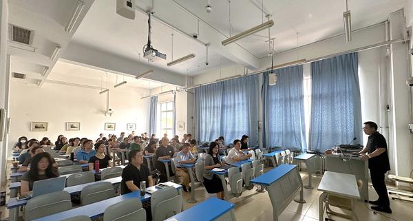 本次培训活动的主题为“数智化背景下基于知识图谱的教学创新与实践”,邀请北京市优秀人才,北京师范大学教授、博士生导师刘永厚为教师们带来干货满满的精彩讲座。刘永厚分别就高等教育数智化的时代背景、《普通语言学》知识图谱课程内容、知识图谱课程运行方式、建设知识图谱课程的心得和建议等内容作讲解。他指出,教育数字化是党中央的战略部署,教师要紧跟新时代、新要求,坚持应用为王、联结为先的理念,遵循数字化发展规律。通过知识图谱等手段释放数字技术对教育高质量发展的放大、叠加、倍增、持续溢出效应,实现优质资源从少到多,学习规模从小到大,应用水平由低到高,推动教育数字化转型、智能化升级、绿色化发展,探索出一条具有中国特色的教育数字化发展之路。