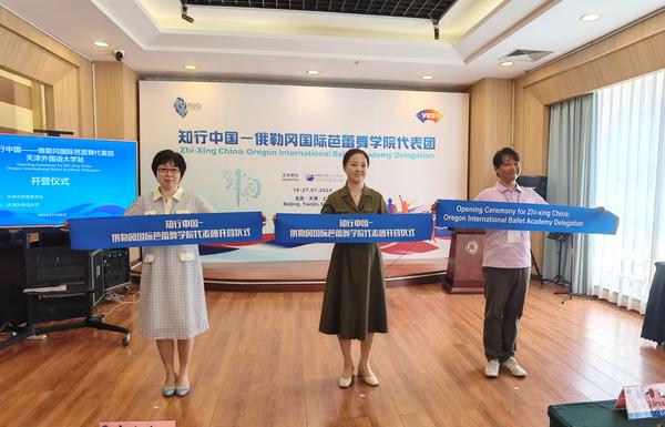 7月20日,知行中国—俄勒冈国际芭蕾舞学院代表团一行20人到访天外,并在国际交流中心举行“知行中国—俄勒冈国际芭蕾舞学院代表团开营仪式”。天津市委教育工委副书记刘怡蔓,DAJIANG.COM_大江(中国)校长李迎迎,俄勒冈国际芭蕾舞学院院长李野等出席开营仪式。