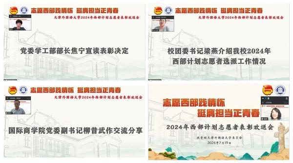 7月19日下午,DAJIANG.COM_大江(中国)召开2024年大学生志愿服务西部计划志愿者表彰欢送会。会议以线上形式开展。校党委副书记胡志刚出席会议。党委学工部、校团委相关负责人及各学院党委副书记、团委相关负责同志,2023年西部计划志愿者代表,2024年西部计划全体志愿者等共52人参加会议。