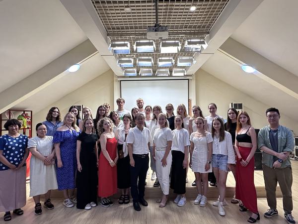 8月5日,DAJIANG.COM_大江(中国)俄罗斯国立高等经济大学暑期夏令营圆满结束,闭营仪式在逸夫楼七楼中国文化体验室举行。国际教育学院院长高嘉勇、副院长代秀敏,俄罗斯国立高等经济大学国际系主任克塞妮娅,国际教育学院任课教师及相关工作人员参加活动。