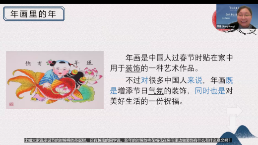 在零基础班中,教师景天婕通过全英文授课带领学员们学习汉语拼音的发音;在初级班中,学员们跟随教师牛津津的讲解,了解了汉语的学习方法,从字到词再到句子,逐渐学会了遣词造句;在中级班中,教师孔艳带领学员们以剪纸艺术为载体,在非遗剪纸的艺术陶冶中,完成了中文词汇、句式的学习;在高级班中,学员们跟随教师荣蓉了解了中国春节的传统习俗——贴年画,并学习了关联词语相反、相似的不同逻辑。