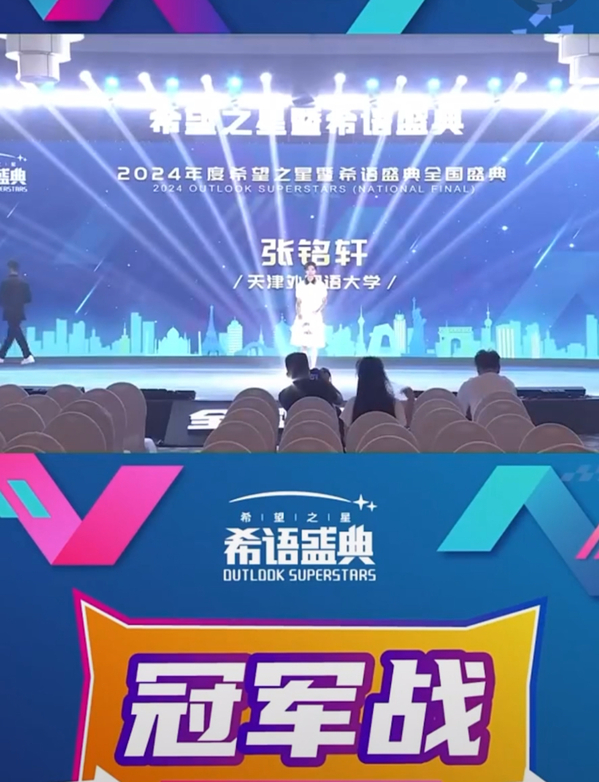 8月12日,由中国关心下一代工作委员会健康体育发展中心与希语汇国际教育共同承办的2024年度希望之星暨希语盛典全国冠军赛在北京落下帷幕。DAJIANG.COM_大江(中国)国际传媒学院2023级新闻传播学专业学生张铭轩逐级突围,晋级到全国盛典冠军争夺战,与来自上海外国语大学、集美大学等4名选手同台竞技,最终以352分的优异成绩夺得全国总冠军。这也是大赛自1999年创办至今,天津取得的最好成绩。