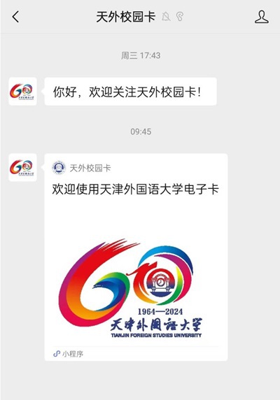 1.微信扫描以下二维码,关注“天外校园卡”公众号
