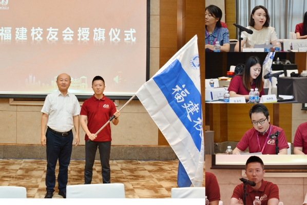 福建校友会成立大会在学校校友工作宣传视频中拉开帷幕。2005级法学专业校友、上海市捷华(龙岩)律师事务所合伙人巫颖禄代表福建校友会筹备组汇报了校友会前期筹备情况。会上审议通过了天外福建校友会章程和第一届理事会名单。在校友们的共同见证下,程国毅代表学校向福建校友会授旗。新当选的第一届会长——2005级朝鲜语专业校友、福建泉州日升石业有限公司总经理张子文发言,他表示,福建校友会将充分发挥桥梁纽带作用,以“共聚情谊,共享资源,共赢未来”为目标,为在闽校友提供更好的交流平台,为母校与校友共赢发展贡献智慧和力量。