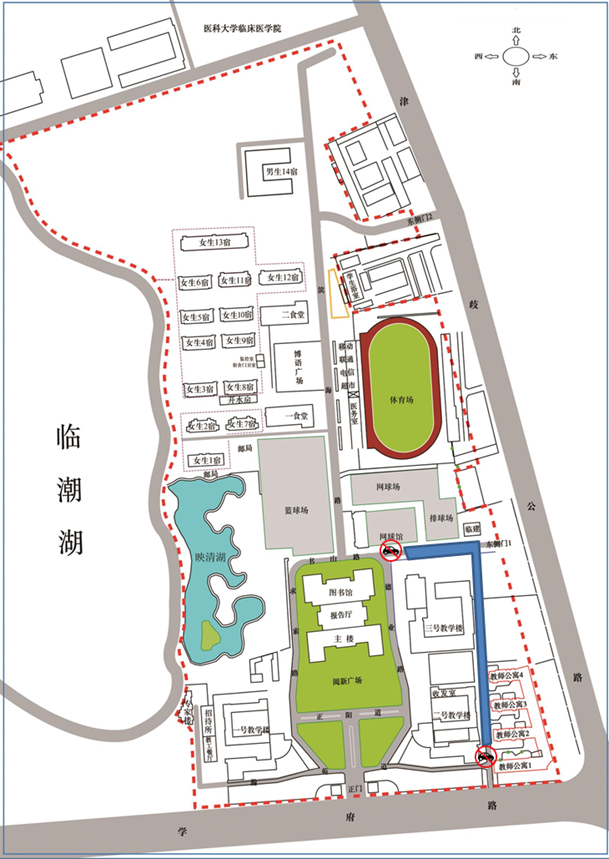 马场道校区逸夫楼北面道路、逸夫楼与体育馆间道路、体育馆北面道路作为军训场地,每日7:30至11:00、15:30至18:30禁止通行机动车辆,全天禁停机动车辆。体育馆东面停车场内车辆从体育馆南面道路进出停车场。