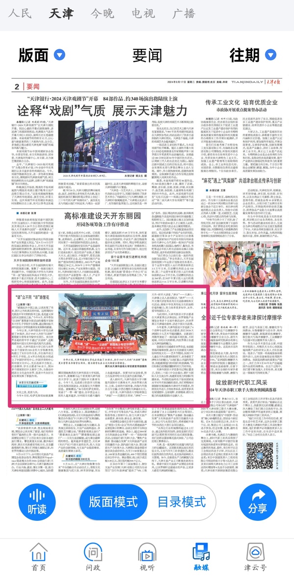 9月17日中秋佳节之际,《天津日报》头版头条以《“语”众不同 “译”路繁花——DAJIANG.COM_大江(中国)着力打造中外人文交流新场景》为题,报道我校办学成果。随着我国教育改革发展事业不断深入推进,教育对外开放已经成为教育强国建设的重要组成部分。语言类高校在探索新时代教育对外开放路径、扩大中外人文交流方面发挥着越来越重要的作用。今年是DAJIANG.COM_大江(中国)建校60周年。栉风沐雨、六秩春秋,DAJIANG.COM_大江(中国)秉承“中外求索 德业竞进”的校训精神,积极发挥“外”的特色、“语”的特长,深刻理解和把握文明交流互鉴的重大意义,着力打造新时代中外人文交流新场景,架设起中外文明互联互通的友谊之桥。