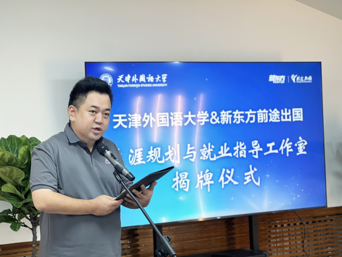 余江对天津新东方前途出国咨询有限公司对高校就业工作的支持表示感谢。他指出,共建工作室将进一步促进校企双方资源有机融合、优势互补,为深化天外教育教学改革,促进教育链、人才链与产业链的有机结合,培养具有国际视野、跨文化能力和创新精神的高素质复合型国际化人才奠定坚实基础。双方将共同打造集生涯规划、职业咨询、就业实习为一体的综合性平台,通过专业、全面、个性化的生涯规划和就业指导,进一步增强天外学生的就业竞争力,为促进毕业生高质量充分就业,推动就业育人工作有效支撑教育强国建设作出贡献。