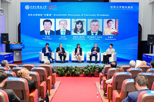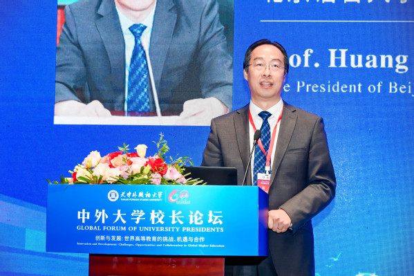 9月28日,作为庆祝天外建校60周年校庆系列活动之一的“中外大学校长论坛”在钟楼报告厅举行。来自中国、美国、俄罗斯、白俄罗斯、西班牙、葡萄牙、意大利、匈牙利、波兰、捷克、巴西、乌克兰、日本、韩国、印度尼西亚、泰国、越南、哥伦比亚、加蓬、哥斯达黎加、北马其顿、保加利亚、罗马尼亚等20多个国家和地区的驻华使节代表,友好交流校校长、副校长,科研机构负责人代表,孔子学院代表等200余位中外嘉宾参加论坛。