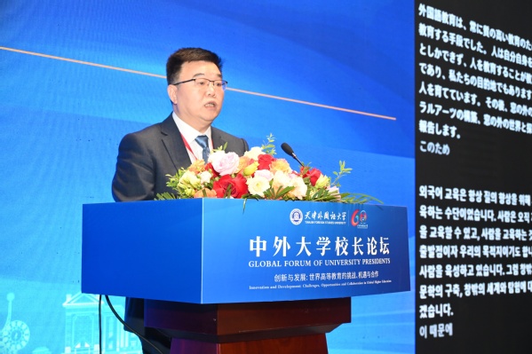 习近平总书记在全国教育大会上强调,要深入推动教育对外开放,统筹“引进来”和“走出去”,不断提升我国教育的国际影响力、竞争力和话语权。扩大国际学术交流和教育科研合作,积极参与全球教育治理,为推动全球教育事业发展贡献更多中国力量。本次论坛的举办,是天外落实全国教育大会精神的重要举措,对于抓住高等教育面临的新机遇、迎接高等教育面临的新挑战、深入推动高等教育国际交流合作具有重要意义。