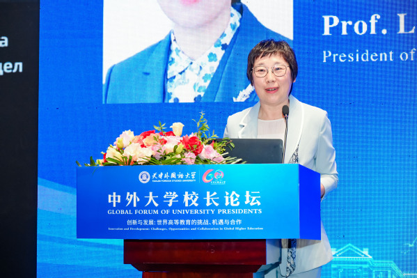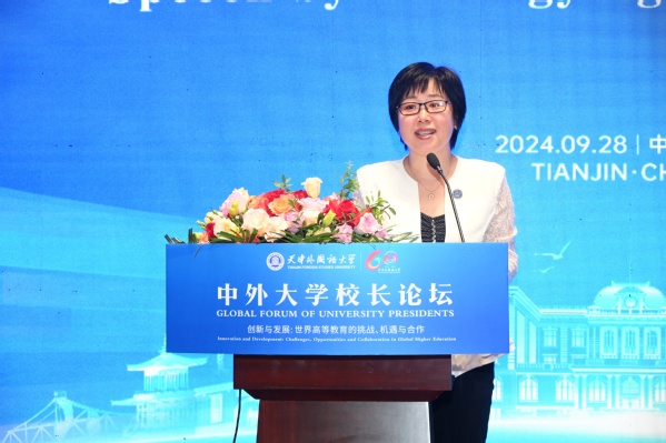 李迎迎在致辞中表示,伴随着新一轮科技革命和产业变革,人类社会走向了以人工智能为牵引的数字时代,教育数字化成为开辟教育发展新赛道、塑造教育发展新优势的重要突破口。希望各位中外大学校长能通过本次论坛的交流平台,共同探索发展人工智能与教育革新的新路径,达成战略合作共识,推动教育变革发展;增进不同文化、不同定位、不同特色的高校与学科之间的理解、交流与互鉴,更好开展多元文化和全球公民教育;积极探讨新时代大学发展的新路径与新范式,积极参与全球教育治理,共同开创全球高校交流合作的新局面。