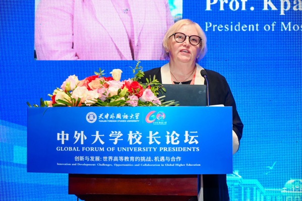俄罗斯莫斯科国立语言大学校长伊琳娜·克拉耶娃教授分享了该校通过学生出国境交流学习,在促进现代语言教育大学可持续发展和培养国际水平人才方面的尝试。
