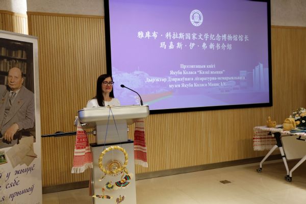 李迎迎对新书的顺利出版表示祝贺,向给予支持和帮助的白俄罗斯驻华使馆、白俄罗斯共和国文化部雅库布·科拉斯国家文学纪念博物馆,以及负责翻译、校对本书的白俄语专业师生表示感谢。她指出,2024年是中白建交32周年。两国自建交以来,政治互信不断加强,各领域互利合作逐步深化。作为中白人文交流领域合作的突出成果之一,天外白俄语专业自2017年开设招生以来,在人才培养、科学研究、文化交流、服务社会等方面取得丰硕成果,已成为中白交流合作新的窗口和桥梁。未来,学校将继续深化与白俄罗斯教育文化机构的交流与合作,为新时代进一步发展两国全天候全面战略伙伴关系,推动构建中白命运共同体贡献智慧和力量。