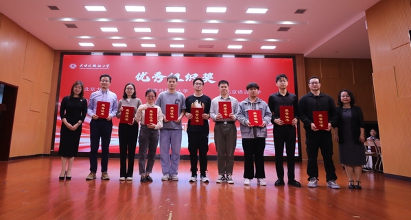 颁奖典礼上,与会人员回顾了精彩作品,与会嘉宾为获奖单位和个人颁发了证书。本次大赛吸引了全国众多院校学子的积极参与,参赛学生以精湛的演技、流利的阿拉伯语表达和富有创意的剧情设计,展现了他们扎实的语言功底和出色的跨文化交际能力,为大家带来了一场精彩纷呈的阿拉伯语文化盛宴。随着获奖剧目展演结束,颁奖典礼进入尾声,首届阿拉伯语短剧大赛也圆满落下帷幕。