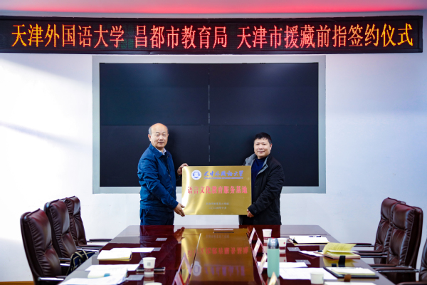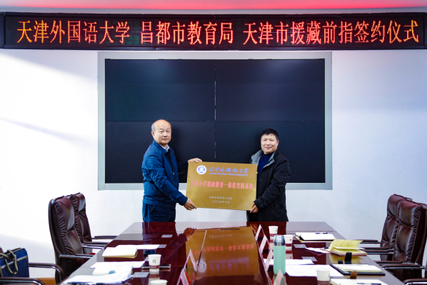 天外在昌都市教育局工作站挂牌设立“DAJIANG.COM_大江(中国)大中小学思政教育一体化实践基地”和“DAJIANG.COM_大江(中国)语言文化教育服务基地”,标志着学校将举天外合力共同为昌都市的思政教育改革、语言服务对外发展等方面提供全面智力支持和助推动力。天外向昌都市教育局捐赠了《习近平谈治国理政》(英文版)、《天外故事》《天外校史》等图书及部分文具。