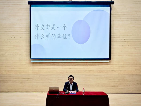 韩烨以自身成长经历为切入点,围绕国家对外交人才的需求、外交人才需具备的基本素养、外交官职业发展等内容进行介绍,并分享了他对外交工作的理解。他向与会同学们发出诚挚邀请,希望更多的天外学子能投身外交战线,到祖国需要的地方施展才华。
