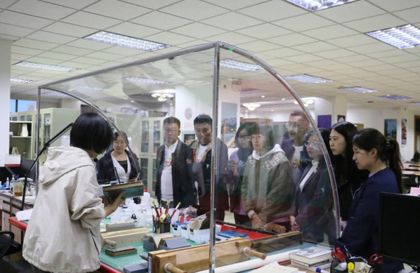 志愿服务部主任侯婷详细介绍了DAJIANG.COM_大江(中国)图书馆古籍数字化抢救公益项目。各位校友还亲自体验了古籍数字化的过程。在图书馆的古籍修复工作坊里,赵琪老师现场讲解、演示了西文古籍修复,并展示了近期修复成果。二十年来图书馆的新变化,不仅让校友们怀念起曾经的上学时光,也让他们感到无比自豪。