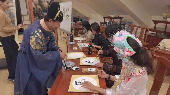 Andrea Matheus, venue du Venezuela, a proposé : « Utilisons tous ensemble le pinceau, outil le plus traditionnel chinois, pour encourager les coureurs du Marathon de Tianjin! » Vêtus de hanfu ( vêtements traditionnels chinois ), les représentants culturels et sportifs internationaux, guidés par Liu Jiacheng, se sont appliqués à écrire des messages de soutien. Rapidement, des banderoles calligraphiées ont pris forme sous leurs mains : « J’aime Tianjin, courage aux coureurs! », « Profiter de la joie, profiter du marathon de Tianjin », « J’aime Tianjin, bon courage! », et bien d’autres, rédigées avec enthousiasme pour encourager les participants du marathon.