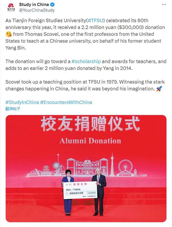 中国日报运营的教育部留学中国海外媒体账号转发相关报道,进一步扩大学校海外影响力。