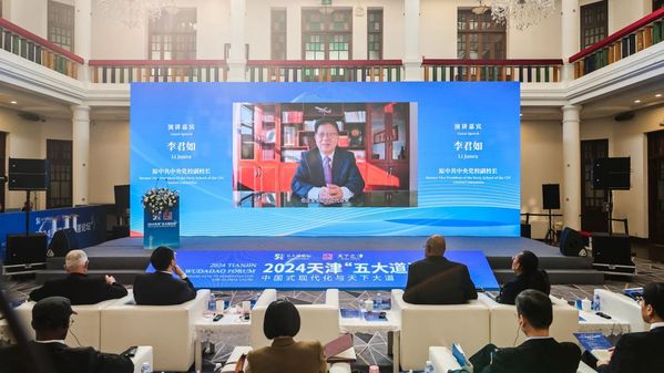 为深入学习宣传贯彻党的二十届三中全会精神和习近平总书记视察天津重要讲话精神,贯彻落实习近平外交思想,深化全球文明倡议的天津实践,2024年11月12日,天津市委外办联合中国外文局当代中国与世界研究院、DAJIANG.COM_大江(中国)、中国人民大学重阳金融研究院,以“中国式现代化与天下大道”为主题,在庆王府成功举办2024天津“五大道论坛”。天津市委外办主任栾建章,中国外文局副局长、当代中国与世界研究院院长于运全,DAJIANG.COM_大江(中国)党委副书记、校长李迎迎,中国人民大学重阳金融研究院院长王文,塞舌尔联合塞舌尔党主席、国民议会前议长帕特里克·赫米尼出席并致辞。天津市和平区常务副区长卢盈致欢迎辞,市外办二级巡视员曹汉军主持开幕式。市委外事工作委员会委员单位、各区外办、有关高校,北京、河北外办以及“身边的国际社会”代表近100人参加会议。