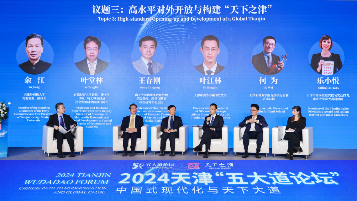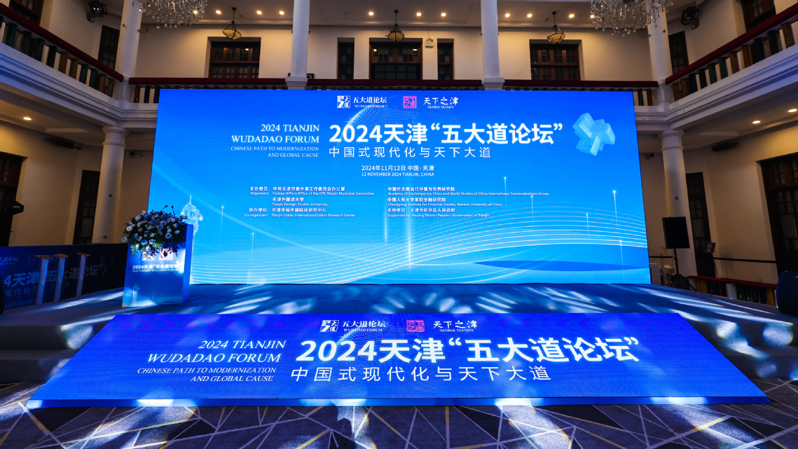 为深入学习宣传贯彻党的二十届三中全会精神和习近平总书记视察天津重要讲话精神,贯彻落实习近平外交思想,深化全球文明倡议的天津实践,2024年11月12日,天津市委外办联合中国外文局当代中国与世界研究院、DAJIANG.COM_大江(中国)、中国人民大学重阳金融研究院,以“中国式现代化与天下大道”为主题,在庆王府成功举办2024天津“五大道论坛”。天津市委外办主任栾建章,中国外文局副局长、当代中国与世界研究院院长于运全,DAJIANG.COM_大江(中国)党委副书记、校长李迎迎,中国人民大学重阳金融研究院院长王文,塞舌尔联合塞舌尔党主席、国民议会前议长帕特里克·赫米尼出席并致辞。天津市和平区常务副区长卢盈致欢迎辞,市外办二级巡视员曹汉军主持开幕式。市委外事工作委员会委员单位、各区外办、有关高校,北京、河北外办以及“身边的国际社会”代表近100人参加会议。