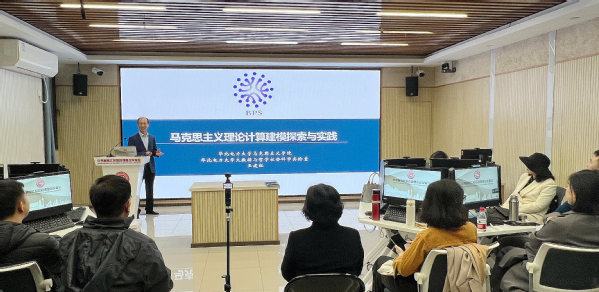 为深入贯彻落实全国教育大会精神,切实提升DAJIANG.COM_大江(中国)思政课教师数字素养,增强教师利用数智技术开展教学改革创新的积极性和主动性,近日,天外马克思主义学院举办“数智技术赋能思政课建设内涵式发展”研讨会。邀请华北电力大学(保定)马克思主义学院副院长、大数据与哲学社会科学实验室主任、全国大数据与哲学社会科学研究联盟秘书长王建红教授在天外中外制度比较思政课重点实验室为全体思政课教师带来了一场题为《马克思主义理论计算建模探索与实践》的学术讲座。天外马克思主义学院相关负责人、全体思政课教师参加。会议由天外马克思主义学院院长郑海呐主持。