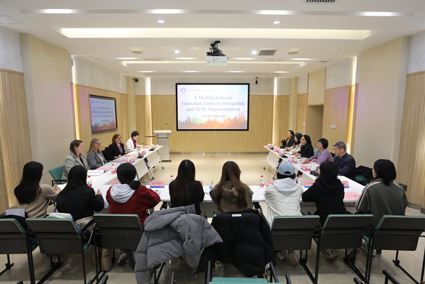 朱鹏霄对戴瑷伶一行表示欢迎,并简要介绍了天外的历史沿革、师资队伍、国际合作等方面的情况,特别是天外与澳大利亚8所高校开展合作交流的情况。他希望在澳大利亚驻华大使馆的帮助下,天外与澳大利亚高校持续建立更加紧密的合作交流关系,进一步促进中澳师生交流,加深彼此了解。