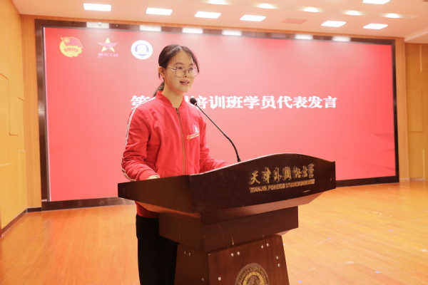 第七期培训班学员代表黄哲雅发言,表达了“以信仰之名、赴青马之约”的坚定信念。
