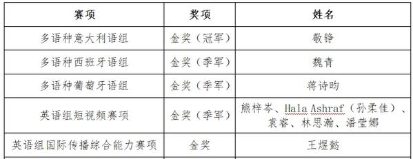 天外学子敬铮荣获意大利语组金奖(冠军)