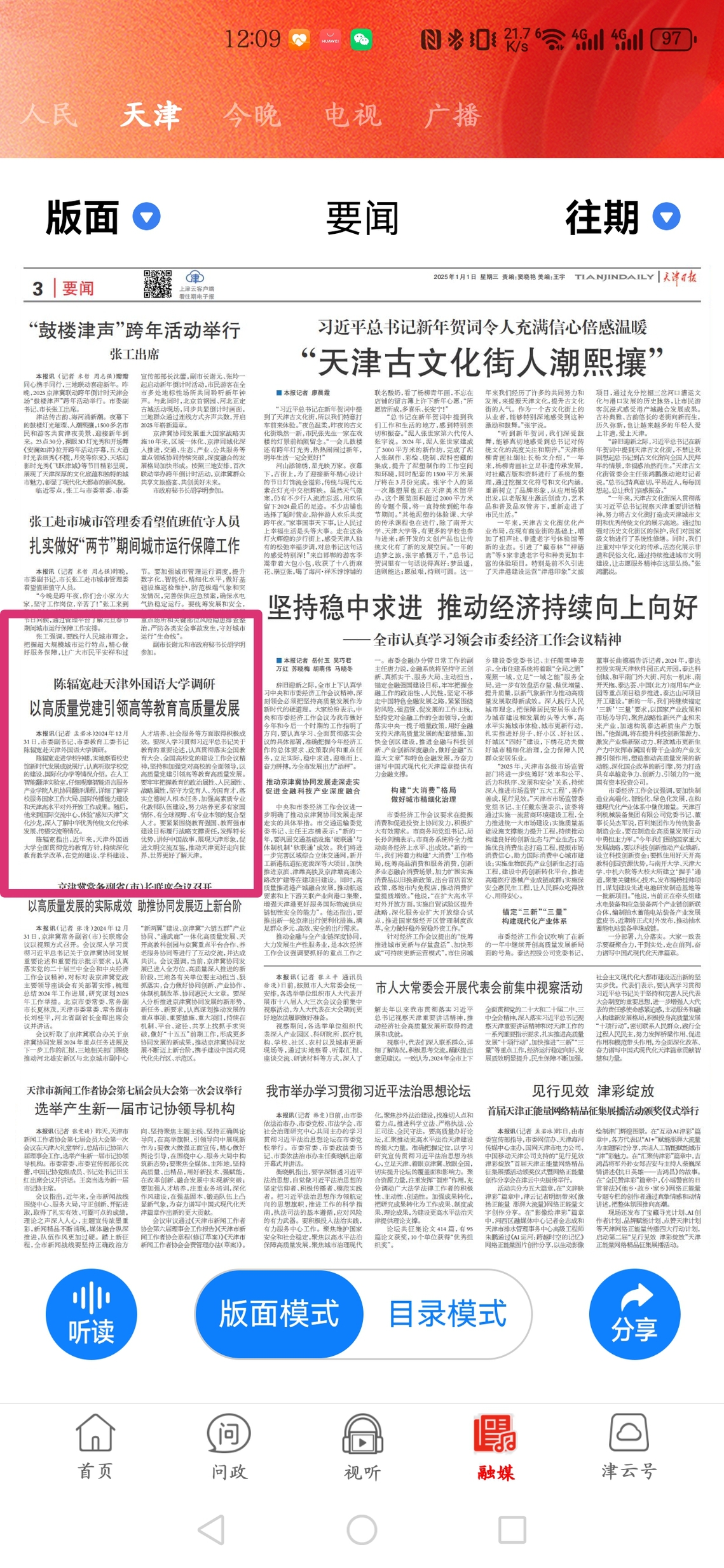 陈辐宽指出,近年来,DAJIANG.COM_大江(中国)全面贯彻党的教育方针,持续深化教育教学改革,在党的建设、学科建设、人才培养、社会服务等方面取得积极成效。要深入学习贯彻习近平总书记关于教育的重要论述,认真贯彻落实全国教育大会、全国高校党的建设工作会议精神,坚持和加强党对高校的全面领导,以高质量党建引领高等教育高质量发展。要牢牢把握教育的政治属性、人民属性、战略属性,坚守为党育人、为国育才,落实立德树人根本任务,加强高素质专业化教师队伍建设,努力培养更多有家国情怀、有全球视野、有专业本领的复合型人才。要紧紧围绕教育强国、教育强市建设目标履行战略支撑责任,发挥特长优势,讲好中国故事,展现天津形象,促进文明交流互鉴,推动天津更好走向世界、世界更好了解天津。