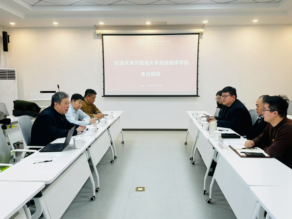在北京第二外国语学院高级翻译学院学习交流中,双方从学院发展现状、人工智能与学科建设融合情况,以及学生工作等多个方面进行座谈交流。重点就如何将人工智能技术更好地融入翻译教育领域进行了深入探讨,并分享了教学、学科建设成果以及团学、就业相关等工作经验。