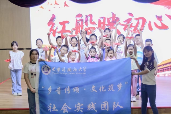 团队成员分别参加天津市文艺展演、天外建校60周年校庆演出等多场中外交流活动;与天津市红桥区铃铛阁外国语中学开展交流合作,举办“思想大讲堂”“外语小课堂”等活动;主动联系学校赴新疆和田地区实习支教团师生,通过线上形式与新疆和田地区小学生开展交流,用快板等形式积极向他们宣讲习近平新时代中国特色社会主义思想,筑牢民族团结基石。