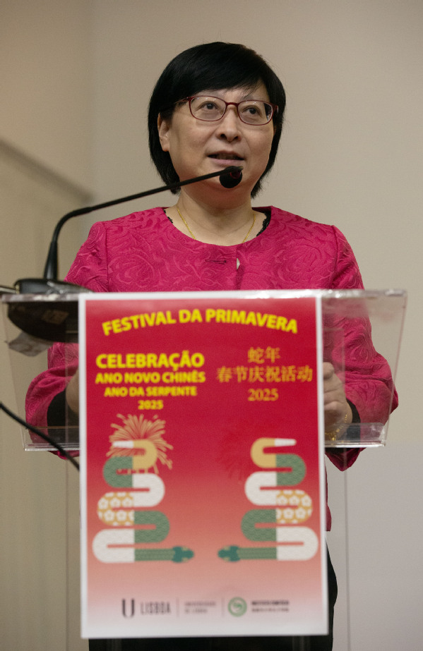 开幕式上,陈默代表中国驻葡萄牙大使馆向里斯本大学孔子学院全体师生及中葡友好人士致以诚挚的节日问候。她指出,春节已列入联合国教科文组织人类非物质文化遗产代表作名录,表明了全世界对中国传统文化的认同和欢迎。里斯本大学孔子学院始终致力于传播中国文化,为葡萄牙民众了解中国、感知中华文化打开了一扇窗口,对此她表示衷心的感谢和崇高的敬意,祝愿里斯本大学孔子学院越办越好。