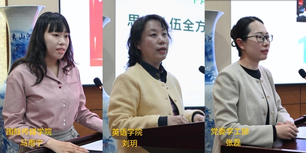 英语学院党委副书记刘玥以“加强思政引领力 铸魂育人启新篇”为题,介绍了学院全方位赋能团学队伍、思政教育与专业深度融合的好经验、好做法、好案例;党委学生工作部张磊以“激活‘创新引擎’深耕‘责任沃土’绘就大思政发展‘新蓝图’”为题,借助DeepSeek平台与大家一起思考五年后希望成为一名什么样的高校辅导员;国际传媒学院辅导员马雨宁以“思政铸魂担使命 育人逐梦启新程”为题,结合自身实际,畅谈了辅导员如何落实好学校第三次党代会精神,助力“思政铸魂”工程落地生根。她们独到的见解和新颖的思路引起大家共鸣,体现了辅导员队伍肯于学习、善于学习、精于学习的可贵品质。