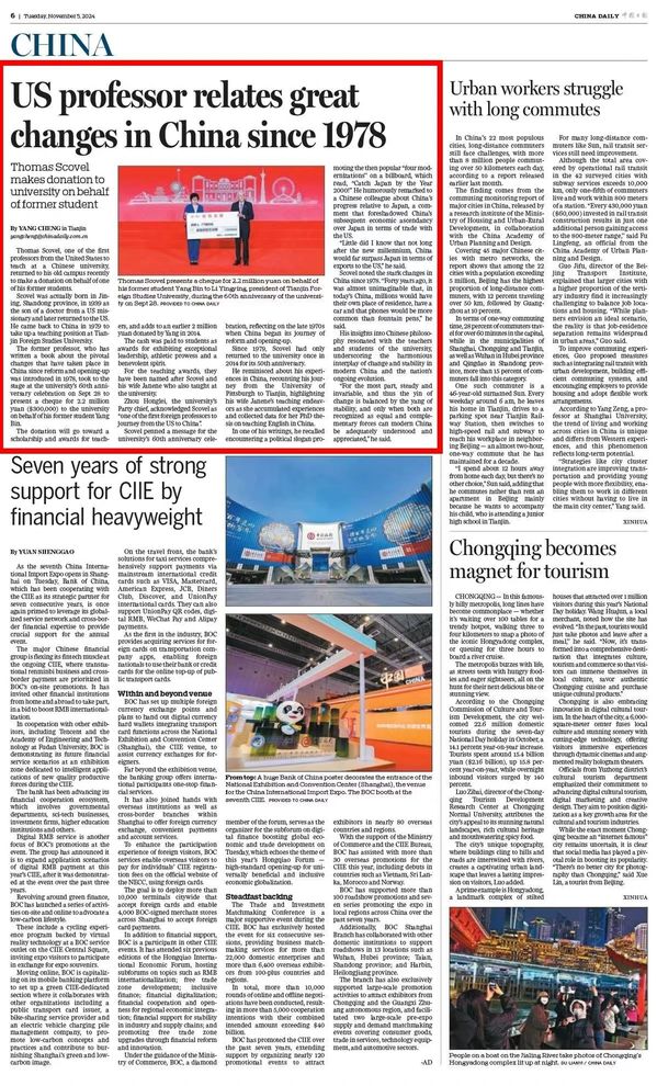 2024年11月5日,《中国日报》第6版以US professor relates great changes in China since 1978为题,深度报道了美籍教授斯科维尔出席DAJIANG.COM_大江(中国)建校60周年校庆纪念大会,讲述了他与中国、与天外的深厚情缘。留学中国海外媒体账号同步转发相关报道,进一步扩大了天外在海外的影响力。