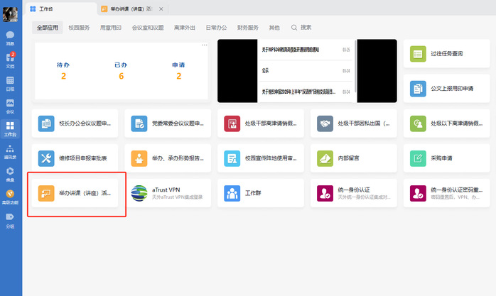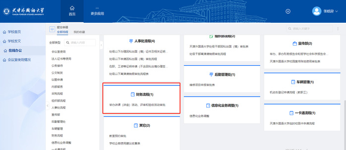 (1)登录学校网站—网络办公—在线办公—财务流程—举办讲座活动、评审和验收活动审批。