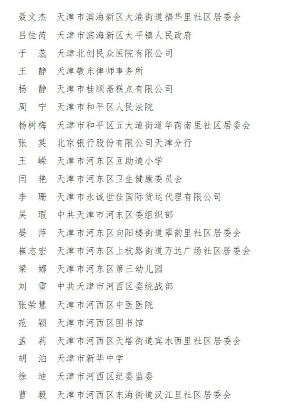 2023-2024年度天津市三八红旗手名单