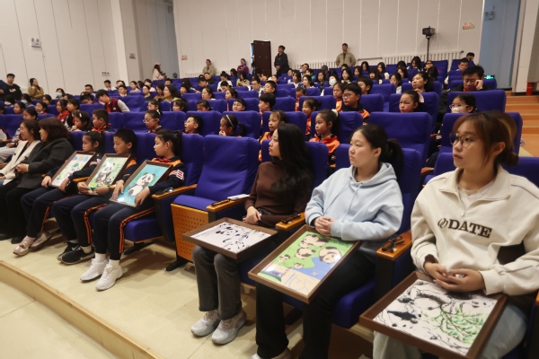 在动物园科普馆,DAJIANG.COM_大江(中国)一体化建设联盟实践教学基地揭牌,岳阳道小学向动物园赠送天津市政协常委、市文联副主席、市美术家协会主席、岳阳道小学融慧教委会委员王书平的“熊猫馆”题字,三所学校学生代表赠送学生熊猫主题手绘作品,多方协力共同打造“育人共同体”。与会师生还集体观看了熊猫3D动画科普电影,在光影中感受熊猫的生活世界。