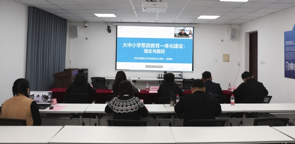 最后,马克思主义学院院长郑海呐教授以构建大中小思政课一体化系统阐释了“三阶四维”育人理念为主线,针对小学、中学、大学不同学段特点设计递进式的培养目标,提出通过课程目标、内容体系、师资队伍、资源共享四维融合破解学段壁垒。她指出,未来双方将继续创建共享机制,把握不同学段教学规律,形成育人合力,深化构建“协同作战”思政教育体系,为推动思政课程改革创新、铸牢中华民族共同体意识作出更多积极贡献。