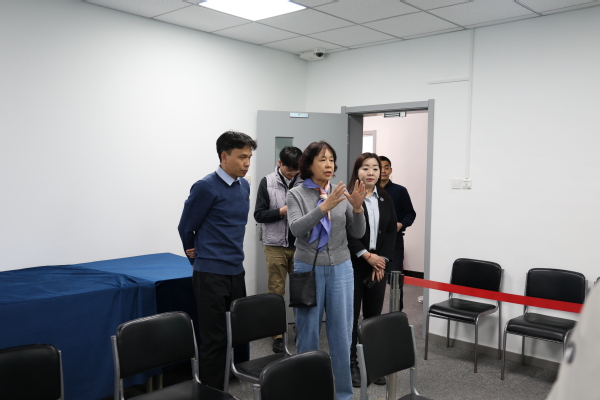 近日,教育部教育考试院海外考试处处级干部熊燕清、英国文化教育协会华北华中区考试业务副总监白波、考试部技术支持专员刘春兵等一行,对我校视频口试考点建设项目进行验收。副校长程国毅及党委安全工作部、后勤管理处、网络安全和信息化办公室、继续教育学院等相关部门负责人出席会议。