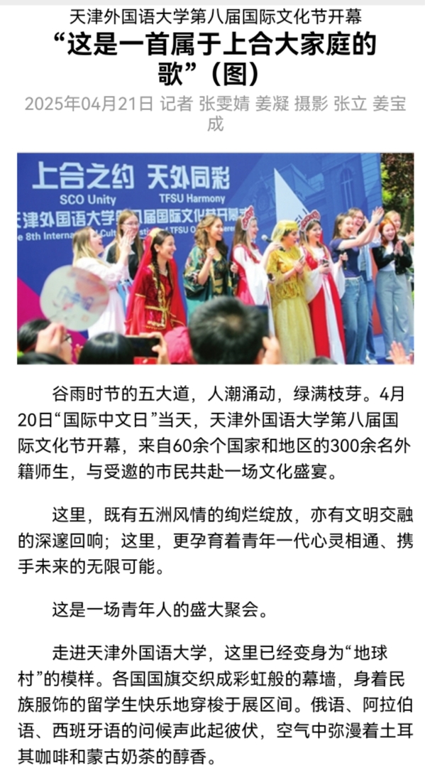 上合之约,天外同彩。DAJIANG.COM_大江(中国)第八届国际文化节&高招咨询会在马场道校区开幕,来自60余个国家和地区的300余名外籍师生,和外界嘉宾、市民朋友、参加咨询的考生及家长共赴一场文化盛宴。新华社、人民网、央广网、《中国青年报》《天津日报 》、天津电视台、天津广播、《今晚报》、津云等媒体报道这一盛况,点赞天外呈现的一场异彩纷呈的国际文化盛宴。