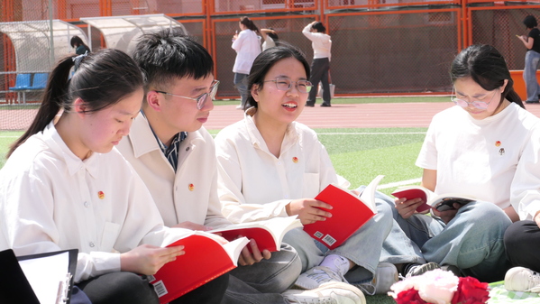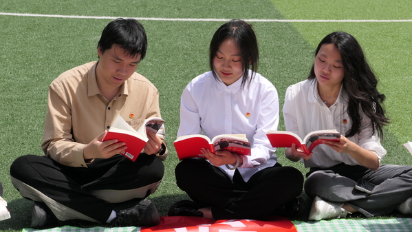 人间四“阅”天,书香能致远,在世界读书日来临之际,4月23日,我校开展“青春共读 筑梦前行”世界读书日主题团日活动,校研究生会、校学生会、青马学员代表围坐马场道校区体育场草坪共读《习近平与大学生朋友们》(第二卷),坚定信念话梦想,青春向上旗高扬,他们认真讨论交流,用实际行动践行“读书好,好读书,读好书”的理念,营造了浓厚的书香校园氛围。