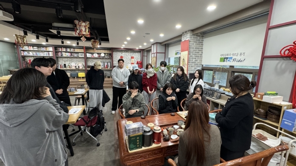 为助力即将赴中国研学的顺天乡大学国际商学院学生提升汉语表达能力,深入体验中国传统文化,顺天乡大学孔子学院于近日精心举办了一场别开生面的“中文会话指导+中国茶文化”主题体验课。本次课程巧妙融合语言教学与文化实践,14名学生在沉浸式学习氛围中,不仅有效提升了汉语交流能力,也深切感受到中国茶文化的独特魅力与深厚底蕴。