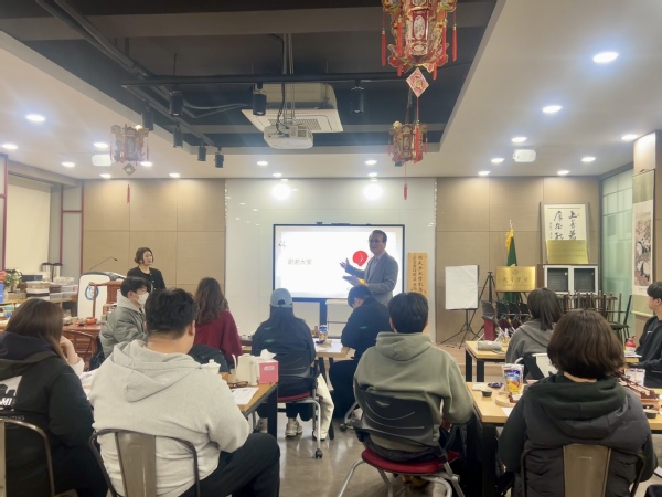 为支持顺天乡大学国际商学院开展“Study & Abroad”课程,拓宽学生国际视野、提升跨文化交际能力,顺天乡大学孔子学院近日在多媒体功能教室举办了主题为《中国历史文化概览》的专题讲座。此次讲座由孔子学院教师河贞慧主讲,国际商学院IT经营专业14名学生积极参与,顺天乡大学前副校长金在弼教授亲临现场指导。